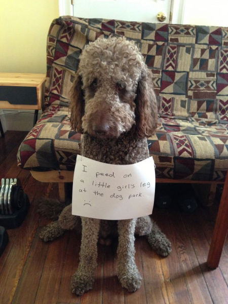 狗兒做的壞事往往都會被主人給發現,主人只能默默得處理善後,為了逞罰牠們主人就自製悔過書幫牠們戴在頭上或放在旁邊以示證明!