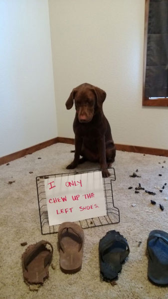 我只咬左邊的鞋子喔! (小編言:這隻狗這麼聰明還分的出左邊、右邊阿~)