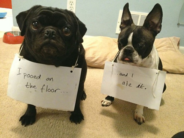 左邊:我大便在地板上… 右邊:我把它給吃了!!!
