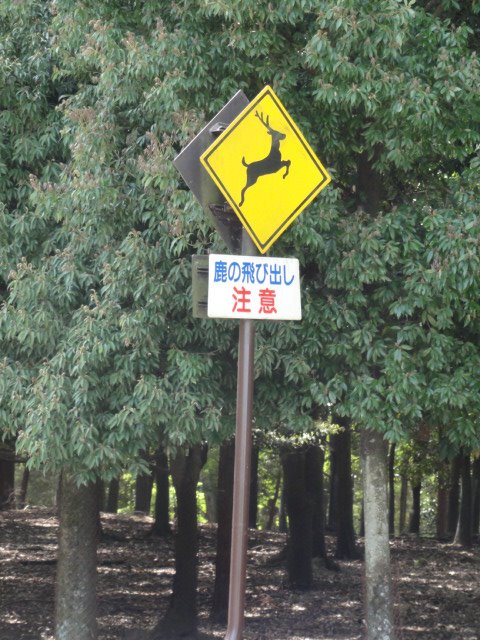 因為鹿真的太多,路邊都會有警告標示叫你注意鹿會突然衝出來