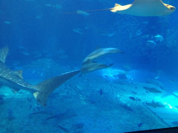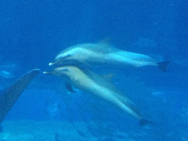 在這裡走動的時候,千萬不要製造太大的聲響跟拍手喔!!因為這樣會增加訓練員的困擾,還有海豚可能會來找你討吃的喔!沒有魚的話,那可是不好的。