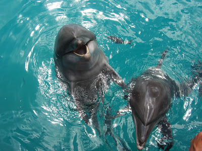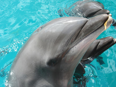這裡的海豚會撿海上的葉子,來跟你討魚吃喔! (好可愛喔!!!! >///<)