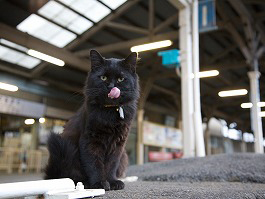龍馬站長貓如其名,非常地有男子氣概,英姿翊翊!龍馬站長是在2010年在車站前被好心的站務員撿到的,從此就在志和口站服務,除了在剪票口送迎旅客之外,牠也負責巡視月台的安全哦!