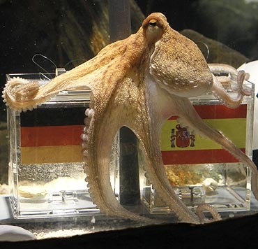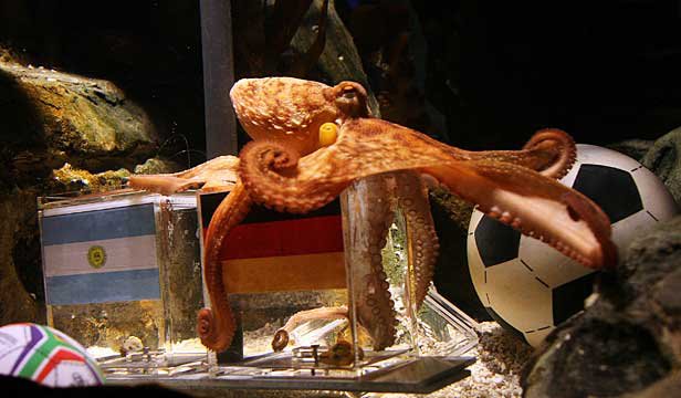 講到了世界盃足球賽,便不得不提在2010年神準預測的妙算子–保羅大師,在對抗賽中準確預測比賽結果,成為當時賭迷心中的賭神,也替足球賽事增添不少娛樂話題。保羅大師是一隻章魚哥,2008年出生於英國,卻是在德國長大,居住在德國奧伯豪森的海洋生物館,並在2008年歐洲國家盃分組賽中的德國對波蘭,進行第一次賽果預測,當時德國隊以2:0得勝,使章魚哥第一次出師就預測成功;後來的幾場賽事中,章魚哥的預測功力成為當時賭盤的走向,儘管章魚哥有小小出槌兩次,但還是幫助賭迷賺進大把大把的鈔票;聽說當時有莊家氣到把最後下注時間提早至章魚哥的預測之前,預防賭迷一窩蜂地向章魚哥朝聖,而這也使得章魚哥從此被改稱保羅大師。