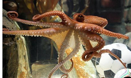 其實當年預測世足賽結果的明星動物不只章魚哥保羅喔,在漢諾威海洋生物水族館的章魚奧托·阿姆斯特朗(Otto Armstrong)每日均有一個仿製足球場的玻璃箱來「預測」頂級足球比賽的結果;而在新加坡的某個占卜攤,擁有一隻年屆13歲的鸚鵡「神鳥」瑪尼,聽說牠也有「預測」賽果的能力,只是不管是Otto還是瑪尼,其比賽結果的預測準確率皆不如保羅大師的神算。(圖片來源: http://goo.gl/KSdZ2c)