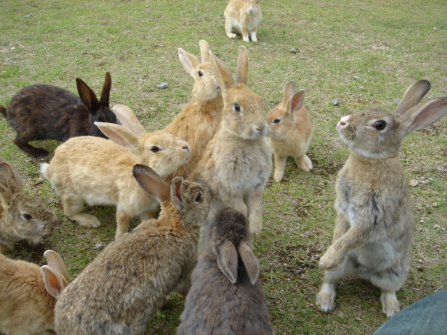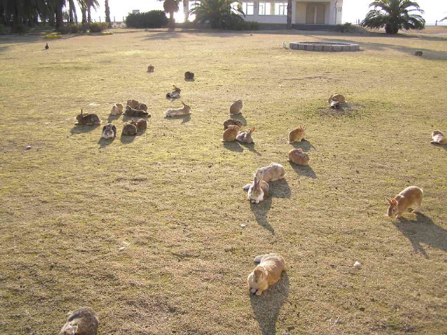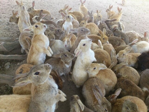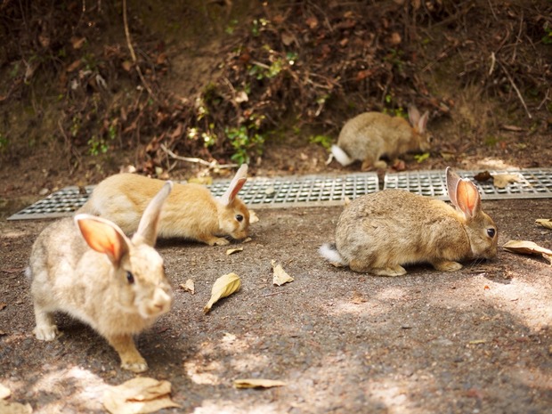 位於瀨戶內海的大久野島,在二次大戰時是有名的毒氣製造工場;但如今的大久野島最大的特色,則是這些盡情在島上趴趴走的可愛兔兔!而之所以會有這麼多野兔,是因為1971年時島上的忠海町小學飼養的8隻兔子被野放,自行繁殖後所造成的;目前粗估島上約有250~300隻野兔哦!