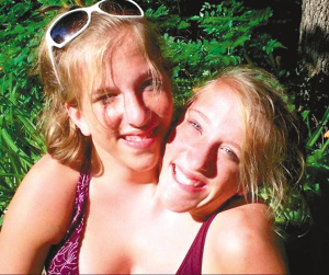 1990/03/07出生於美國的雙頭連體嬰姊妹,她們說最大的困擾在於以後結婚時不曉得要登記誰的名字,非常樂觀開朗。(圖片來源: news.eastday.com)