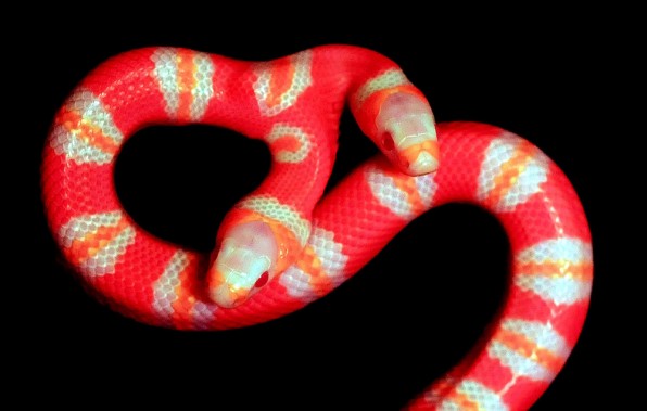 在中國人傳統的觀念裡,認為雙頭蛇代表不祥的信號,而佛州奧蘭多卻出現一條顏色鮮豔的雙頭牛奶蛇。(圖片來源: newswatch -nationalgeographic)