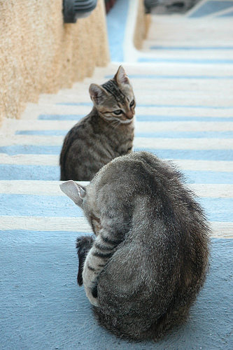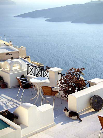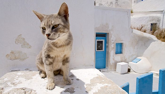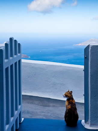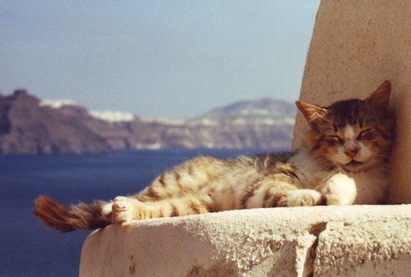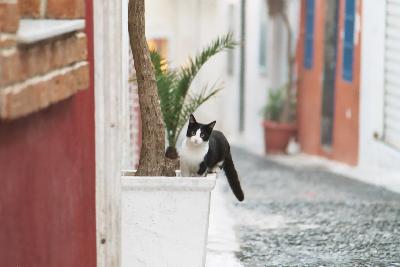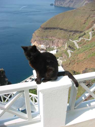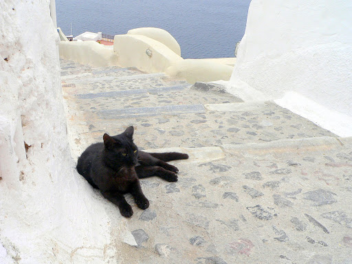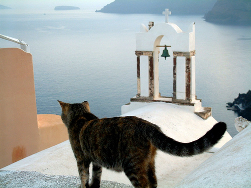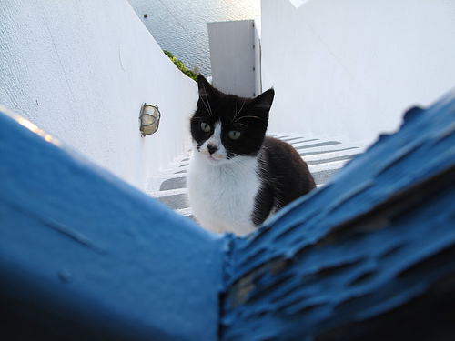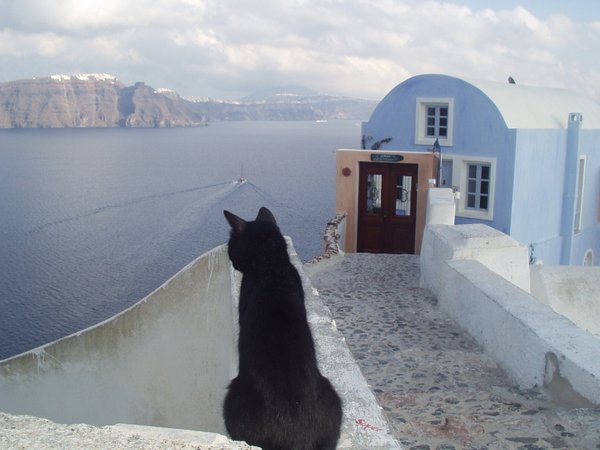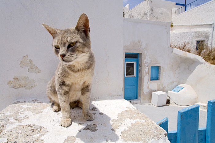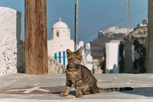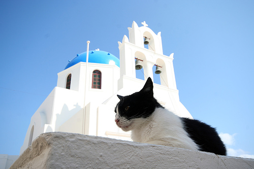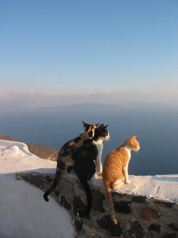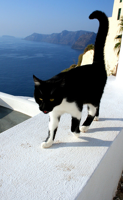 說到希臘的聖托里尼島,浮現在大家腦海中的應該是那一幢幢的藍白色小屋以及無敵海景吧!正所謂有海的地方就有貓(?),這麼漂亮的海港怎麼可能沒有貓咪的蹤影呢!趕快來欣賞一下美景+貓咪的絕妙組合吧!
