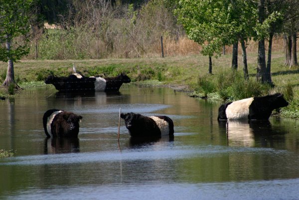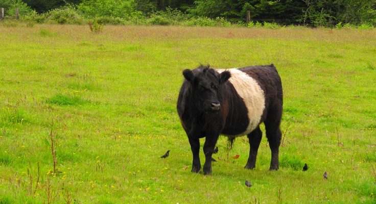 蓋洛威牛又稱為腰帶蓋洛威牛,因為牠的腰剛好有條白色條紋圍在腰上,就像一條皮帶一樣喔!在英國蓋洛威牛屬於食用牛,比較少產牛奶為用途。牠們的個性可是很溫馴的喔!