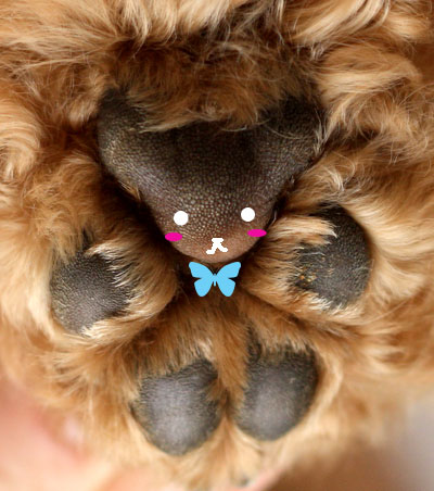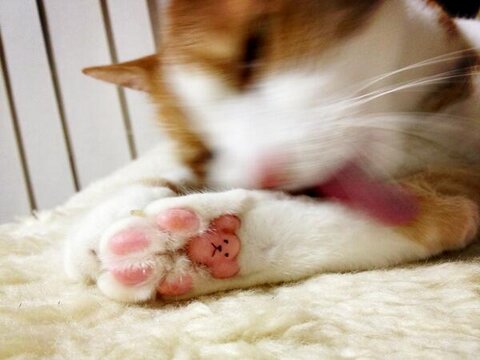 發現了嗎?只要加上簡單的五官,肉球就瞬間變成了一隻泰迪熊!上圖是最早的泰迪肉球熊,是由一個名為Love Meow的臉書專頁上傳的照片;沒想到這張照片引發大家極大的迴響,許多毛爸媽們紛紛仿效,於是網路上便出現許多各種造型且萌死人不償命的泰迪肉球熊!