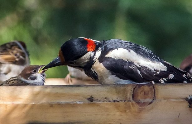 母愛偉大真的好感人,這群孩子跟牠非親非故,啄木鳥媽無私奉獻,為這群孤兒奔波找食物,只求牠們能夠飽餐一頓。但忙碌也別忘了自己的孩子啊! (小編看得好揪心喔!大家可不可以搬在一起住啊?)