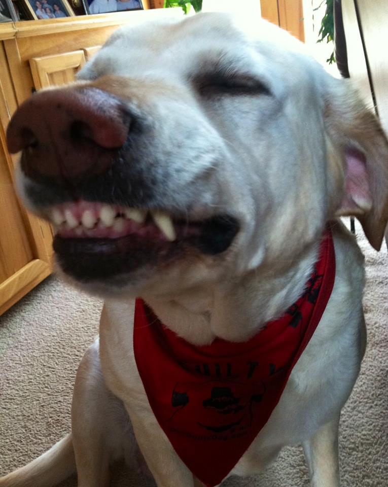 在國外有一隻逗趣的拉布拉多丹佛(Denver),每次只要做壞事被主人抓包,牠就會做出像是露齒笑的猙獰表情,彷彿是在跟主人討饒說:「好啦好啦~下次不敢了原諒我嘛呵呵~」而丹佛的心虛露齒笑系列影片,也在網路上爆紅,讓丹佛成為家喻戶曉的明星狗!