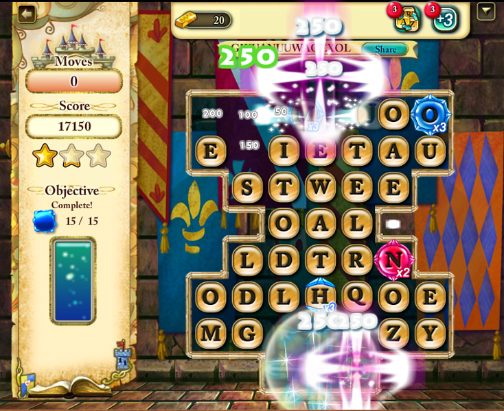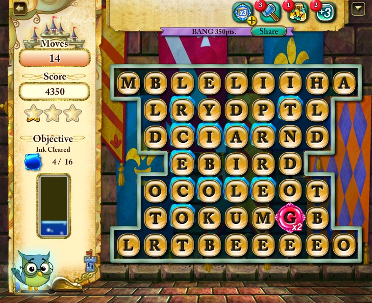 如果玩家能在這麼多字母當中找到較多字母的單字,所得到的積分也會比較高。