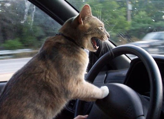 喵星人:快加速!!我要把前面開車的魚吃掉~~