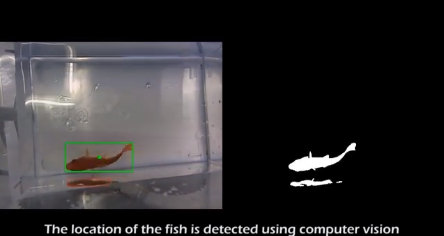 小車車上有個鏡頭,掃描魚游的方向,就能控制車子行走的路線囉!