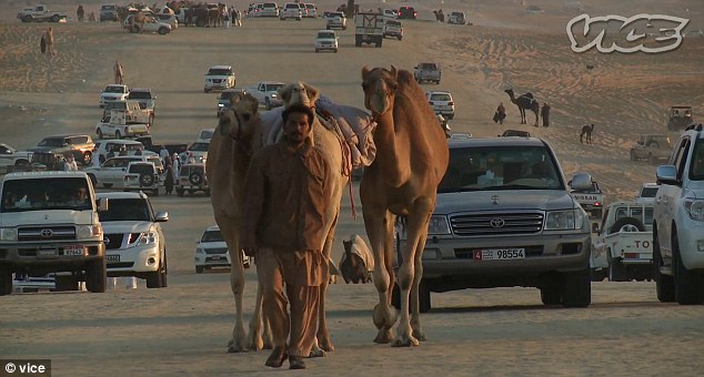 帳篷星羅棋佈在大漠之中,周圍還有一排排高級房車,將會場團團圍繞,這些高級房車是為獲勝者準備的豐厚獎品,許多富裕的駝主往往將獲得的汽車分給飼養員、訓練員,因為對這些富裕的駝主而言,無上的榮耀與聲望才是他們真正想要獲得的獎品。