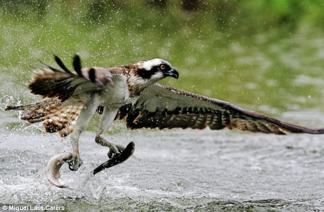 英國鳥類協會的Paul Stancliffe說:「魚鷹是魚類專家。捕獵時,牠們會先瞄準獵物,一旦魚兒浮上水面,魚鷹就會立即俯衝下去,緊緊抓住獵物。雖然魚類是牠們的主食,但有時候也會以蜥蝪,蠑螈等濕地小動物為食喔。」