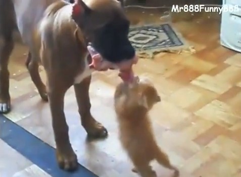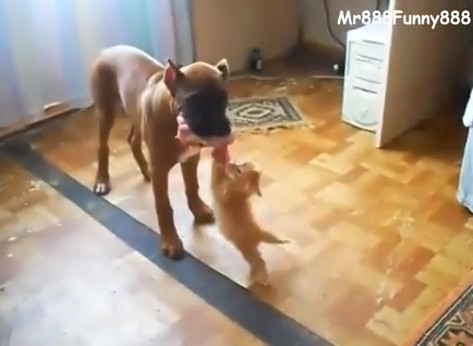 千萬別小看矮個頭的毛孩子,因為牠們的志氣比誰都還高。影片中的小喵喵為了搶掛在大狗狗嘴邊的肉肉,就算自個兒力氣小,也堅持當個迷你搶匪,這麼可愛的小搶匪能夠順利搶到肉肉嗎?