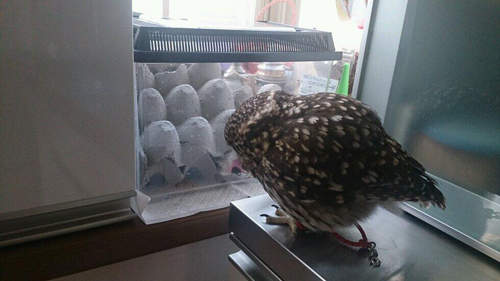 據說這隻可愛的貓頭鷹叫做「トゥル子」,是主人的手養鳥,在牠還是小小貓頭鷹時,就被主人細心呵護著。