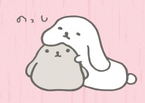 看起來像是融化一般的白色棉花糖兔兔,其實是參考安哥拉兔品種的安哥拉爺爺喔。全身毛茸茸的安哥拉爺爺是這群棉花糖兔兔的領袖,擁有很多知識呢。至於藏在安哥拉爺爺毛髮裡的小不點,雖然不曉得是參考哪一種兔兔的品種,但它無庸置疑的是一隻迷你兔喔。