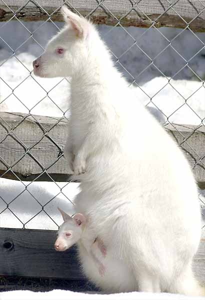 白子袋鼠媽媽的袋鼠寶寶,也深受白化症的困擾