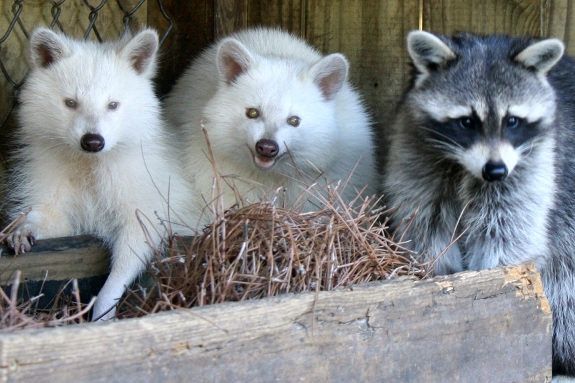 少了浣熊特有的毛色,整張臉雪白的模樣,像極了小白熊呢