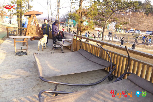 休息站非常貼心的在狗狗公園旁邊設置休憩區