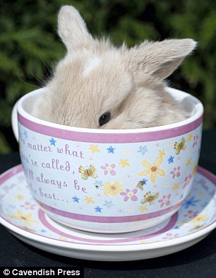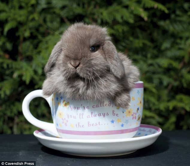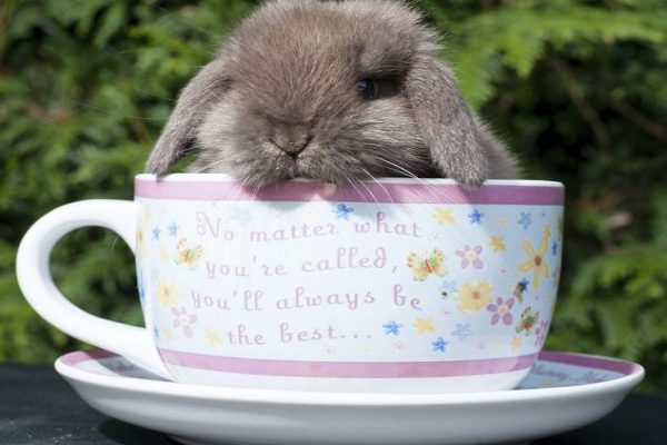 窩在茶杯裡的小兔兔,非常害羞