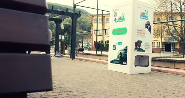 你曾想過,一個回收寶特瓶的小小舉動,就有機會替街上無家可歸的流浪犬們換取一頓溫飽嗎?這樣兼具環保概念的救援浪浪發想,是由一個土耳其的關懷流浪動物網站「pugedon」所提出的,他們特別為浪浪們設計出寶特瓶回收機,只要大家把空寶特瓶投進去機器,機器就會掉出狗飼料,讓路過的浪浪們可以好好飽餐一頓。