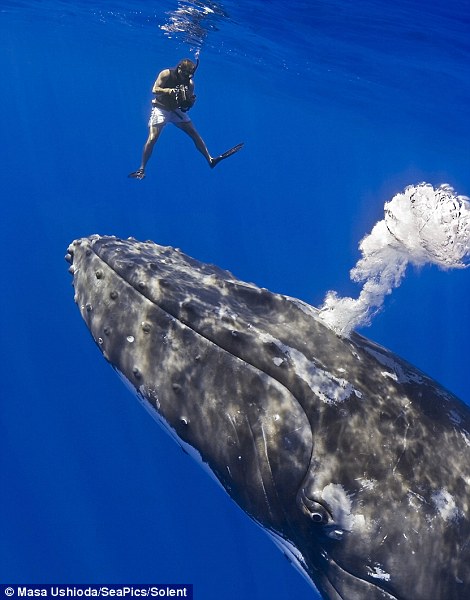 據Masa Ushioda表示,這頭雌性座頭鯨的體型比雙層巴士還要大,但對身為人類的他十分友善,也很好奇