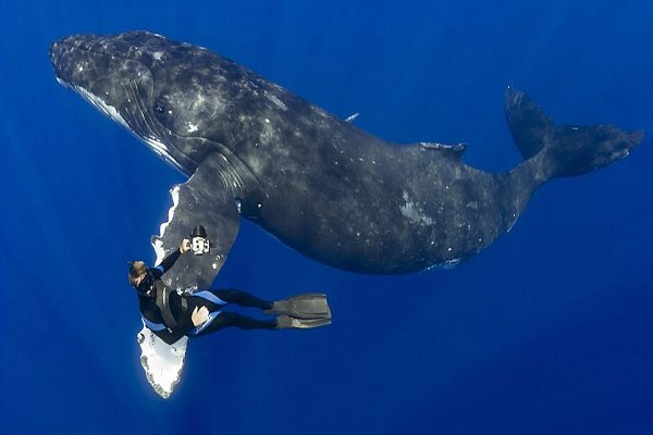 大家喜歡賞鯨嗎?體型龐大的座頭鯨,是賞鯨人士的最愛品種之一,不過數量逐漸稀少的牠們,已經列入《瀕危野生動植物種國際貿易公約》附錄。然而43歲的日裔攝影師Masa Ushioda,卻在日前的美國夏威夷海面下約15.24公尺處,與長15.85公尺、重近3萬6千公斤的雌性座頭鯨「握手」,令人稱羨。