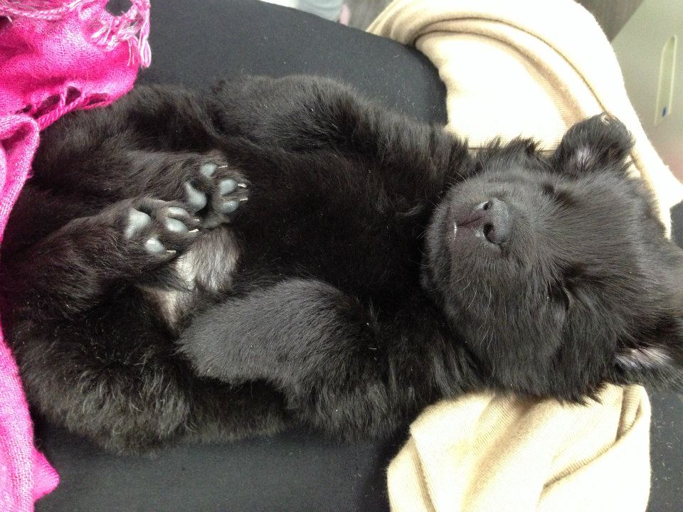 這是小編家狗狗小時候的可愛模樣,最愛躺在女同事腿上呼呼大睡的牠,是不是真的很像一隻小黑熊呢?
