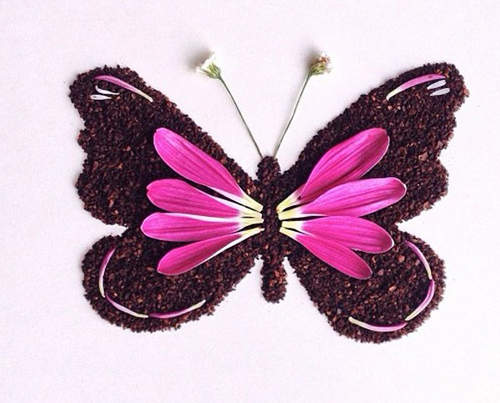 Liv Buranday除了善用咖啡渣作圖,也會將花花草草作為素材