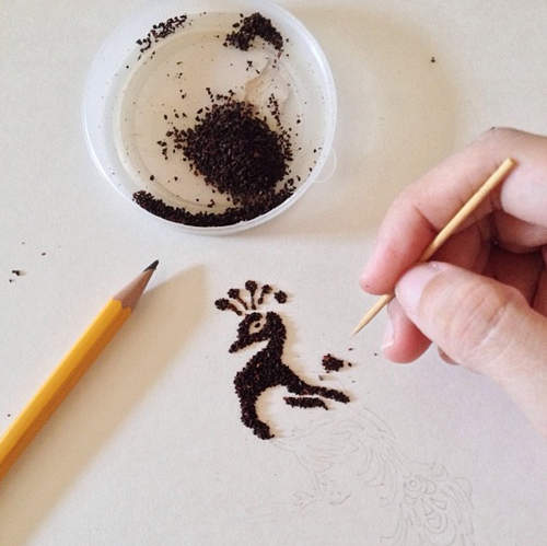 於是,一幅幅獨特的咖啡渣插圖藝術,驚艷世人