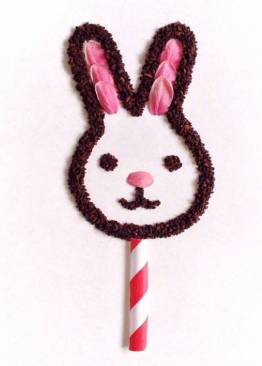 用粉色花瓣充當兔兔的耳朵,顯得特別柔和