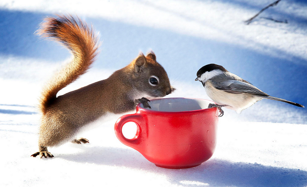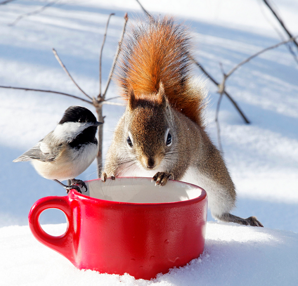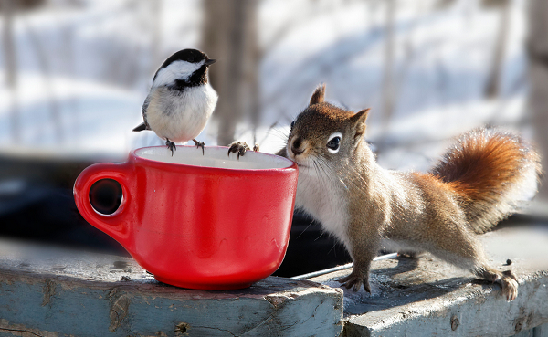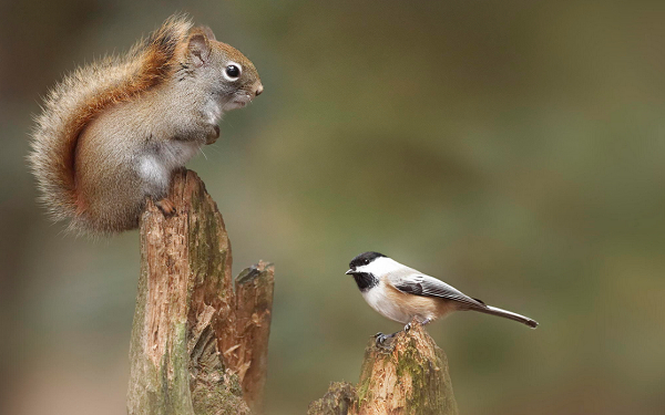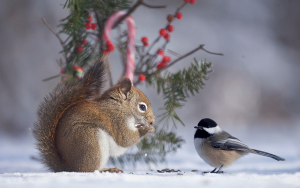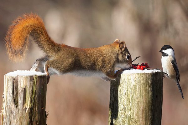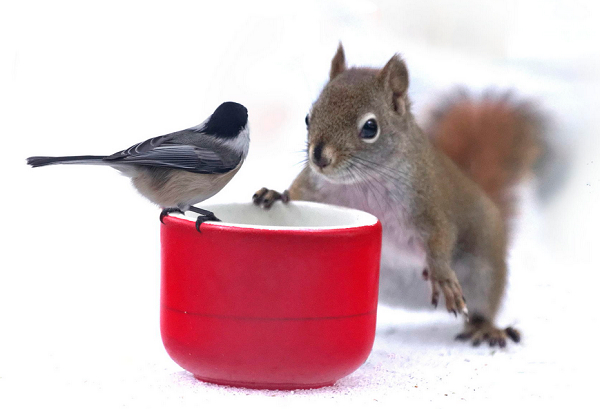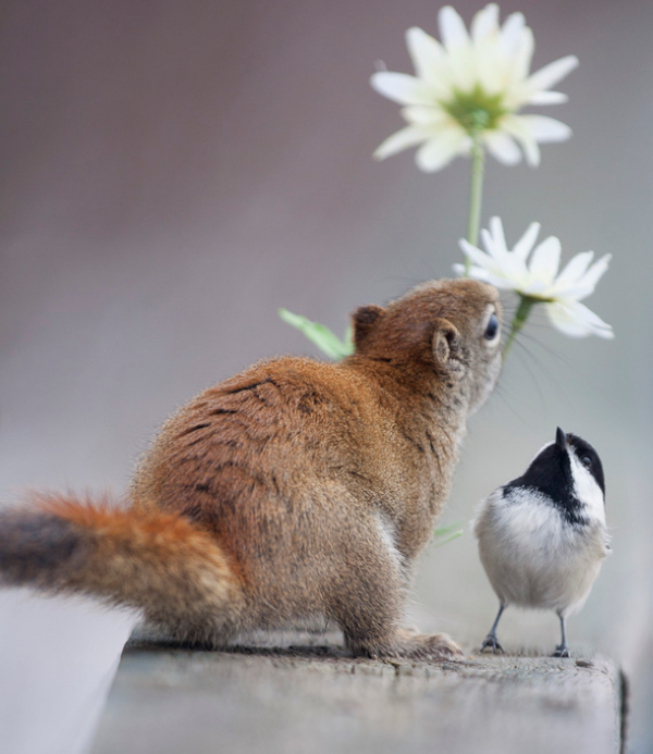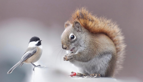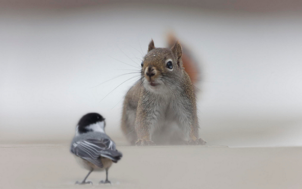 在他近期的作品裡,小編發現這一系列的可愛照片 – 小松鼠 & 黑頂山雀