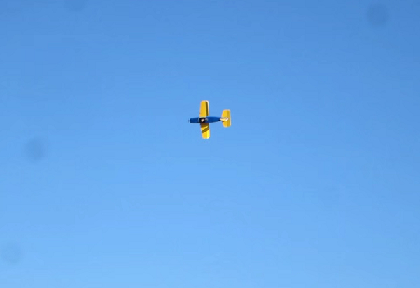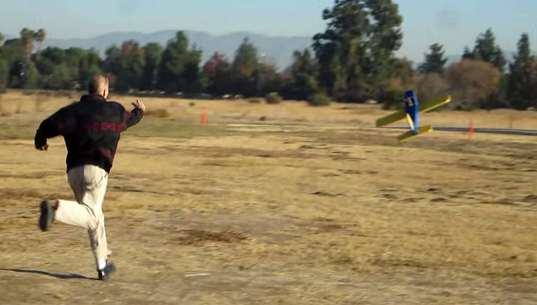 他們準備要試飛,這時朗跑回車上拿東西,就把飛機放在地上