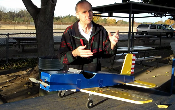 這位杯杯叫做朗,是這架模型飛機的創作者;他很認真地在講解中