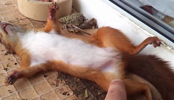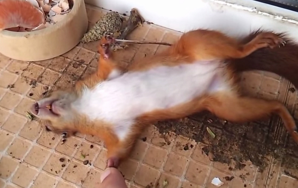 即使是這樣摸牠的腳,小松鼠也只是抽動個幾下,然後繼續睡牠的