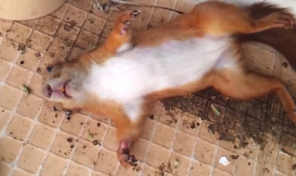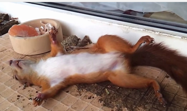 國外有一戶人家經常會在屋外的走廊上放一些水果和堅果,讓附近的松鼠可以飽餐一頓;也不知道是不是小松鼠們習慣了這個友善的環境,某天屋主發現有一隻小松鼠在吃飽喝足之後竟然就在桌上睡著了,而且是毫無防備地睡到翻肚!可愛的模樣被屋主全都拍了下來,讓網友們直呼這隻小松鼠也睡得太香了吧!