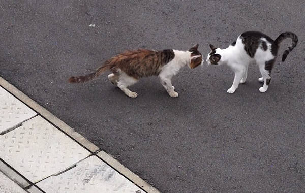 很來看過幾次牠被附近浪貓欺負的場面,才知道牠不是喜歡才跳上去的