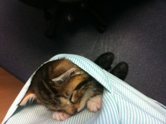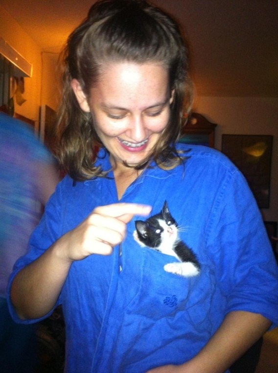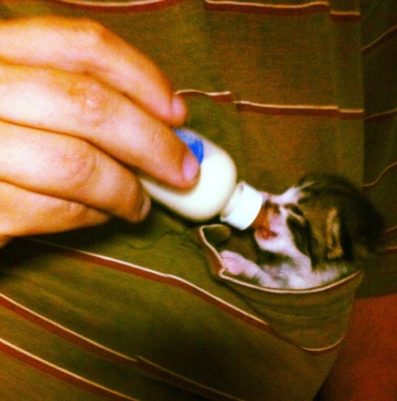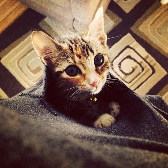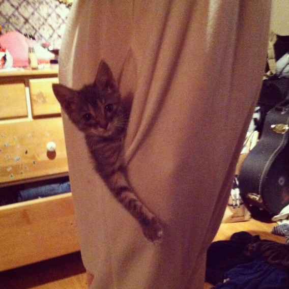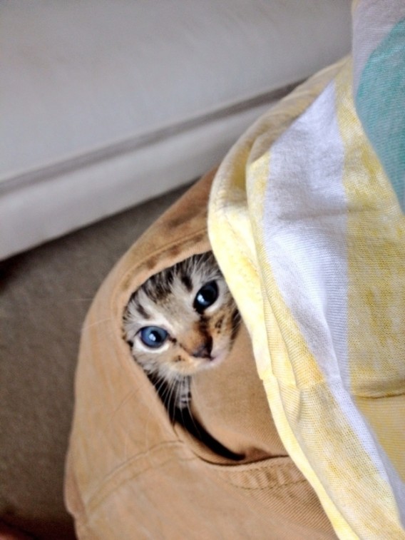 身上的口袋除了放零錢面紙之類的小東西,還能放什麼?有沒有想過放一隻貓咪呢~~~可愛的喵星人雖然不是有袋類動物,但是牠們天性就喜歡小小的狹窄空間,因此有些小貓會喜歡鑽進人類身上的衣物裡待著;不過當然也僅限小貓咪啦~大貓咪的話就要看你的口袋夠不夠深、牢不牢固囉!
