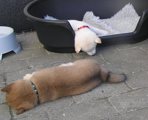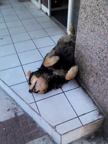 而其實不止這三隻可愛狗狗,很多狗狗熟睡時姿勢都不是很好看啊~讓人很想拿粉筆繞著牠們畫一圈(誤)~