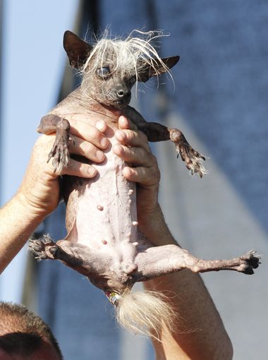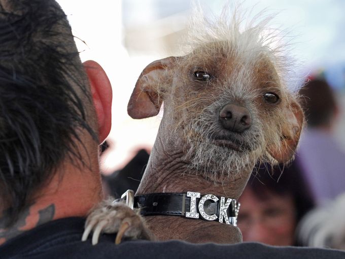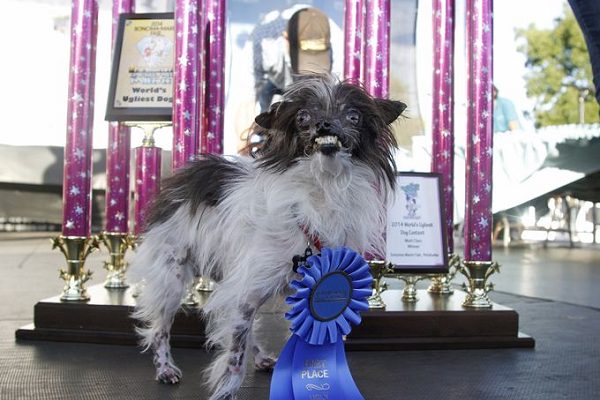 花生是吉娃娃和西施犬的混種犬,今年二歲。飼主波莉(Polly Chandler)說,花生的個性非常穩重,是個很棒的孩子!而牠也擄獲了評審們的心,一舉拿下2014的醜狗冠軍,獲得了藍色獎章以及獎金1500美元!