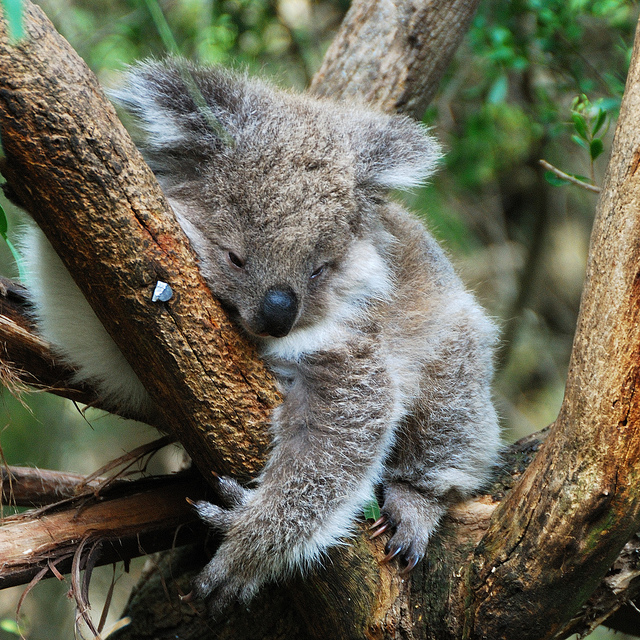 在無尾熊保護中心的每隻無尾熊,耳朵上都有各自的名牌,方便管理員記錄牠們的位置與活動