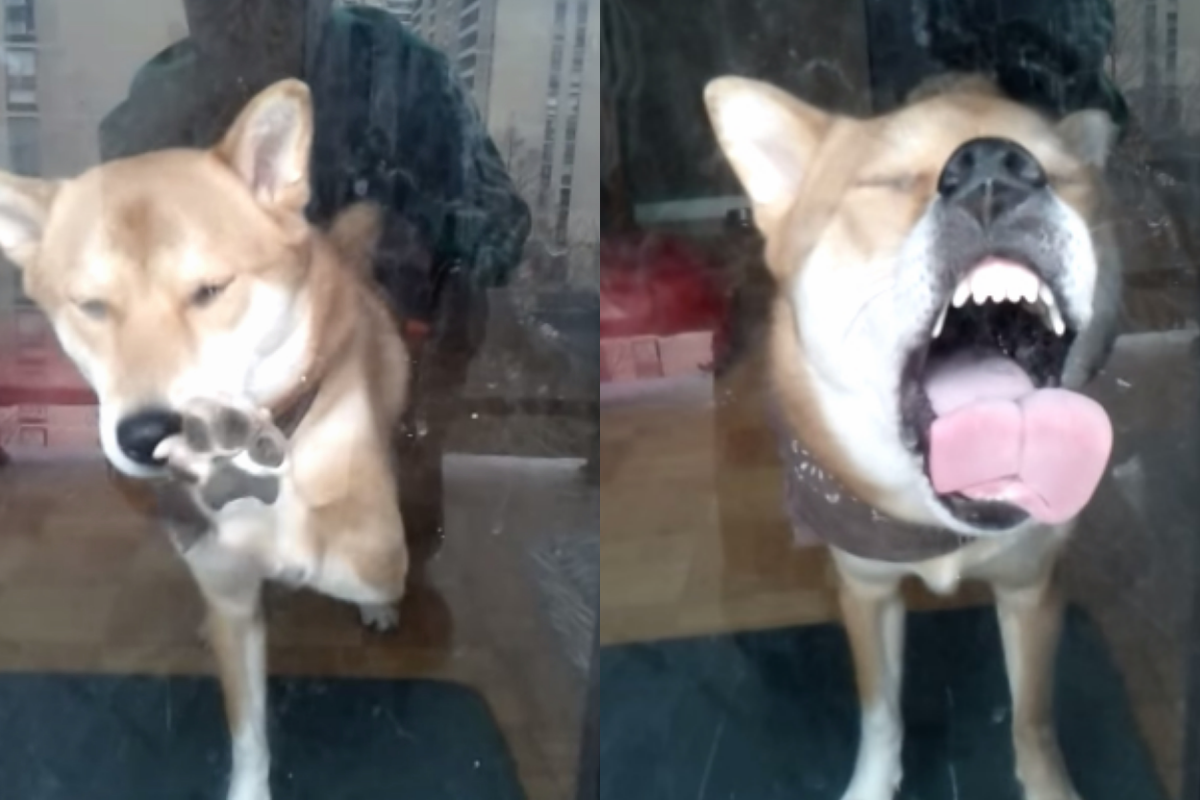 完整的柴犬爆笑狂舔玻璃門影片請看: