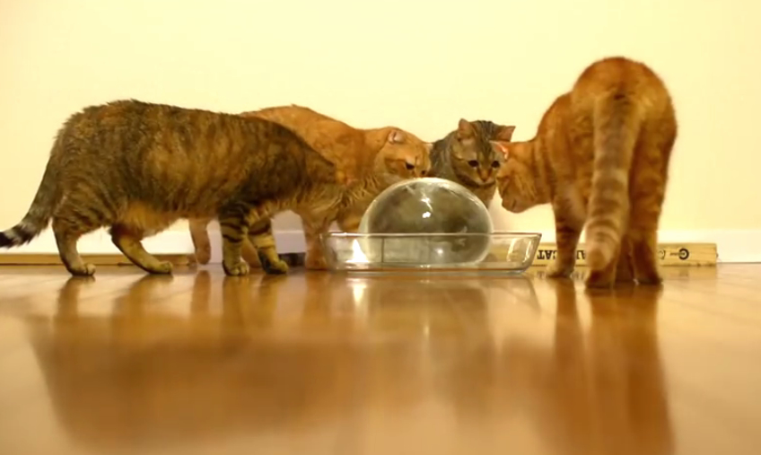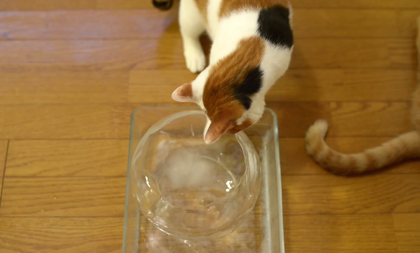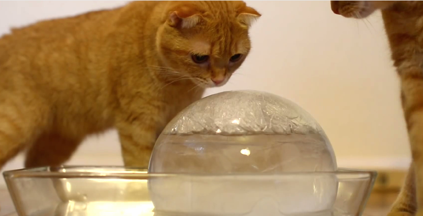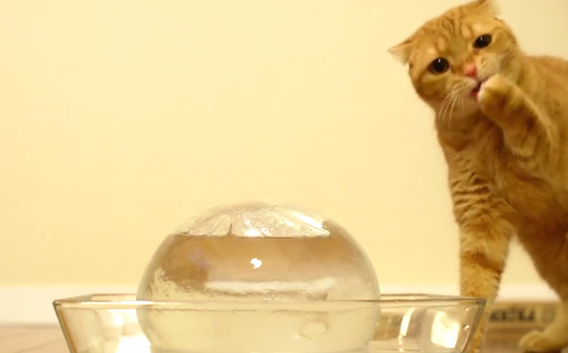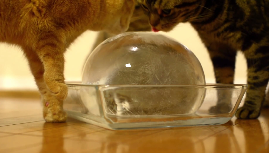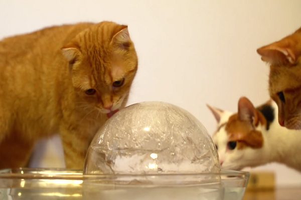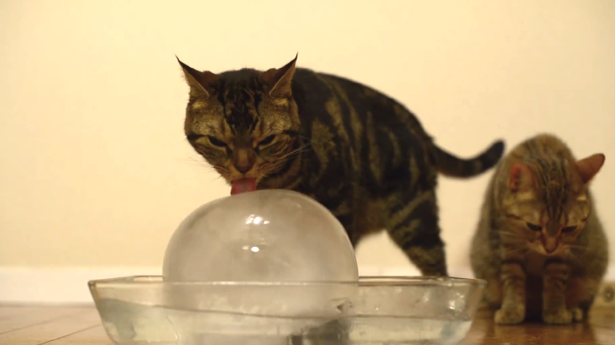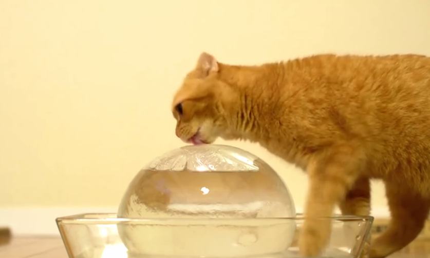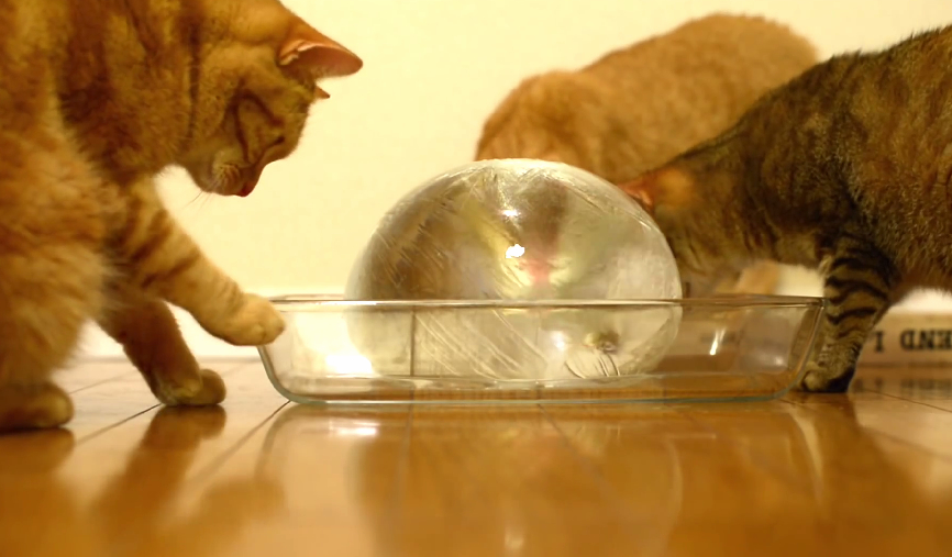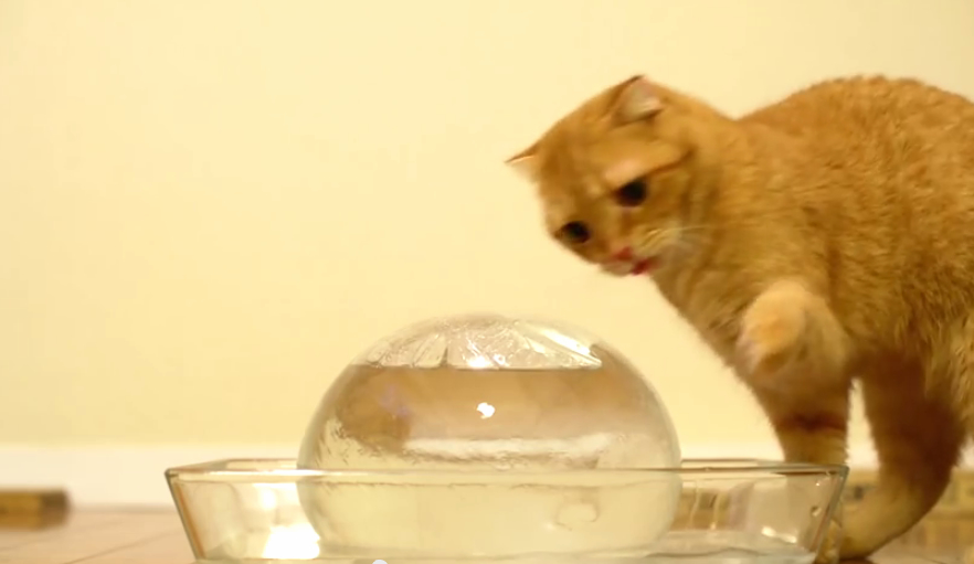 噹啷!你以為他給貓咪玩的是一般那種小冰塊嗎?太沒創意啦!