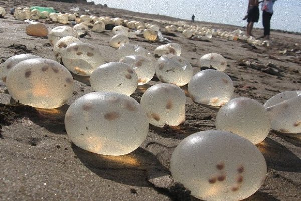 巴西渦螺通常會在靠近海岸的淺海區產下這些裝滿了卵的卵鞘,有時如果遇到大風浪,這些卵鞘就會被沖到岸上來。不過根據阿根廷的海洋研究學者指出,像這樣大量卵鞘被沖上岸,過去三年也只發生過一次,其實並不是那麼常見的事。