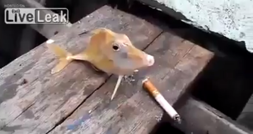 視頻分享網站「LiveLeak」,最近有人上傳一則眾人抨擊的影片,因為影片裡的熱帶魚居然被迫吞雲吐霧,而拍攝的幾名漁夫卻在旁邊哄堂大笑,為自己想出來的惡作劇驕傲不已。